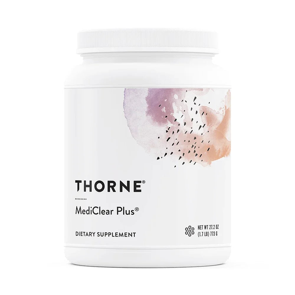 The liver and other organs of elimination in the body are challenged by environmental and diet-related toxins, as well as the inability of nutrient-deficient vegetables, grains, and fruits to provide all the nutrients that are necessary for detoxification. MediClear Plus® is a low-allergenic, rice-and-pea-protein-based supplement that is formulated to support liver and colon detoxification.* This unsweetened, unflavored member of Thorne's MediClear suite provides essential detox nutrients and botanicals along with a complete range of vitamins and minerals in their most absorbable, tissue-ready forms.* MediClear Plus includes well-absorbed curcumin phytosome, grape seed phytosome, and green tea phytosome to help maintain the body's normal inflammatory response to toxic insults.* MediClear Plus is provided in a powder form that mixes easily with water, juice, or nut milks.*