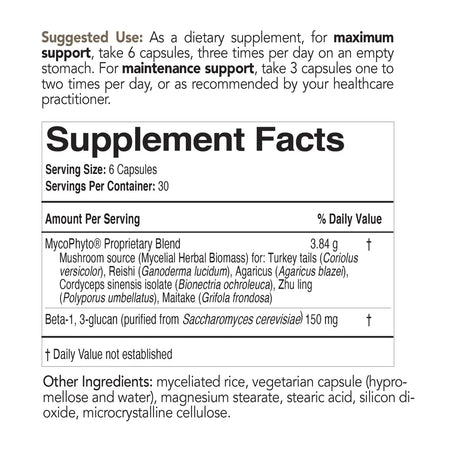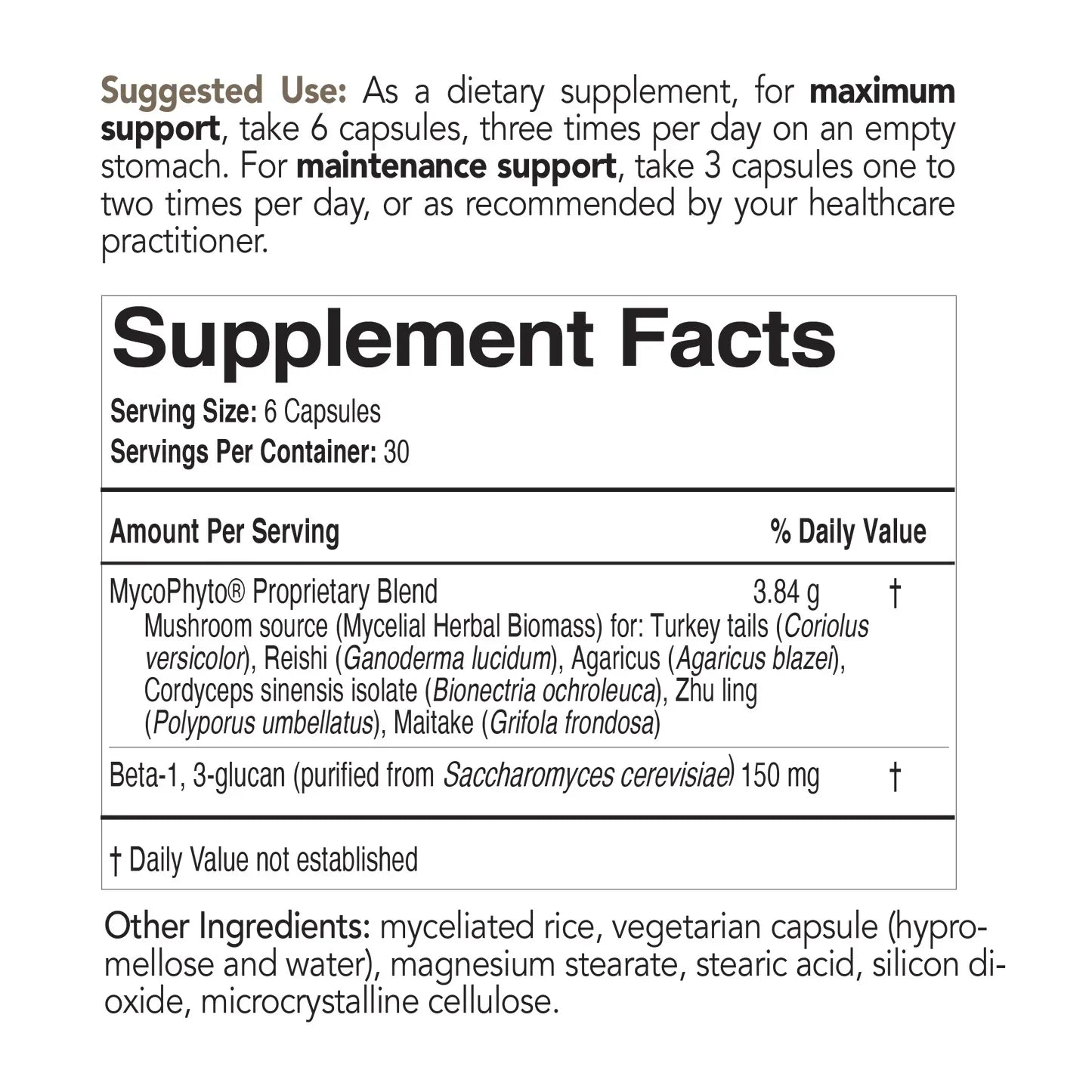 MycoPhyto botanically-enhanced mushroom formula delivers intensive immune support for occasional colds and flu, with additional benefits for optimal wellness. 6 prized mushrooms grown on a blend of potent botanicals provide maximum support for immunity, vitality and long-term health.*