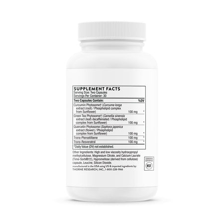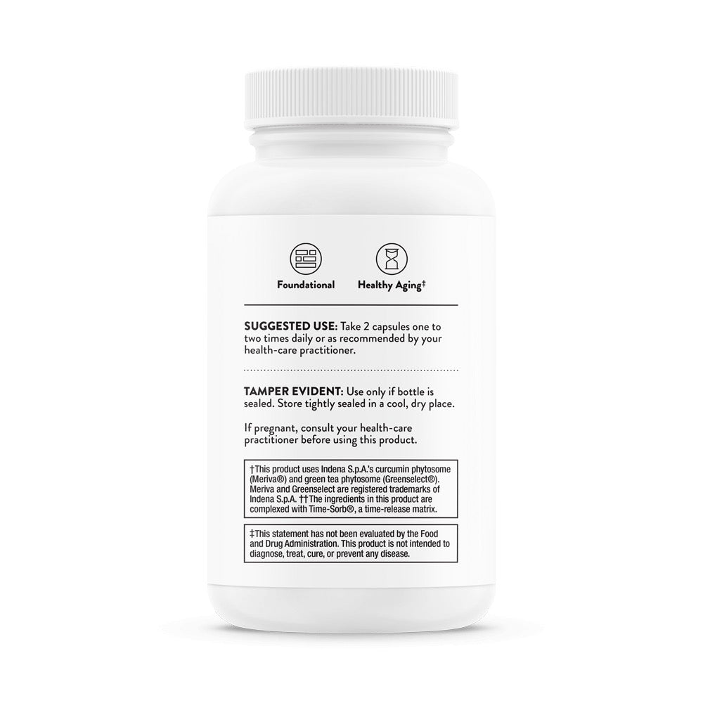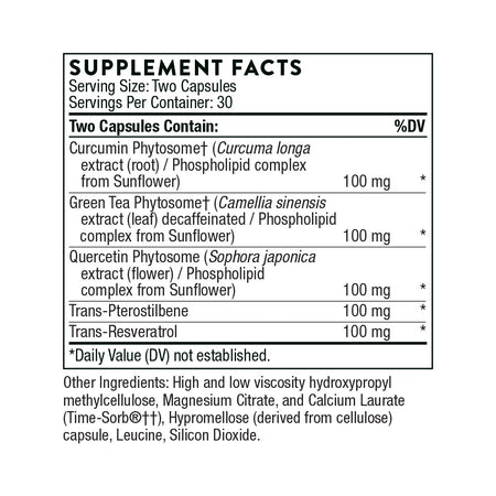 - Curcumin, green tea, and quercetin extracts provided as phytosomes for optimal absorption