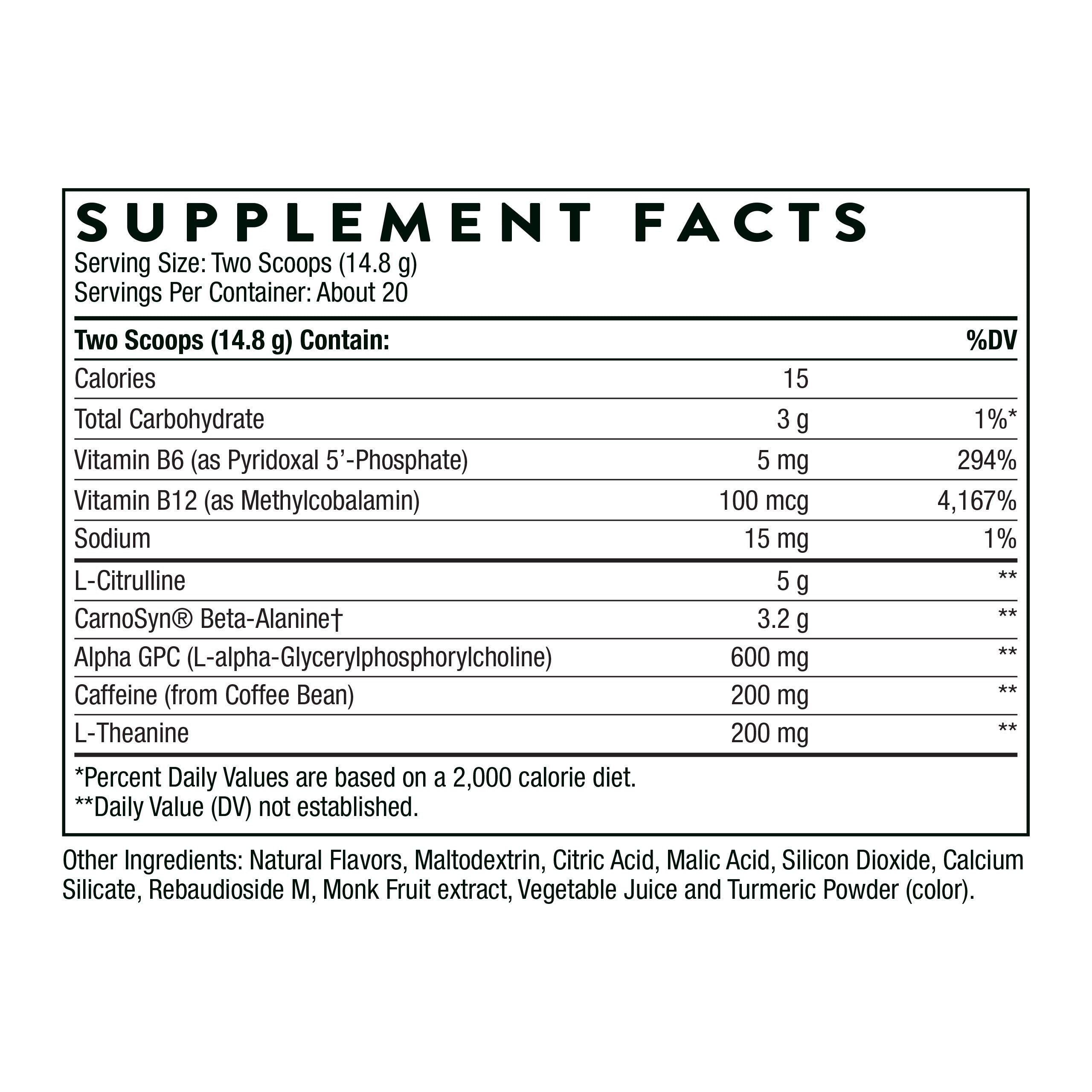 High-performance amino acids, alpha-GPC, and naturally derived caffeine for clean, sustained energy*